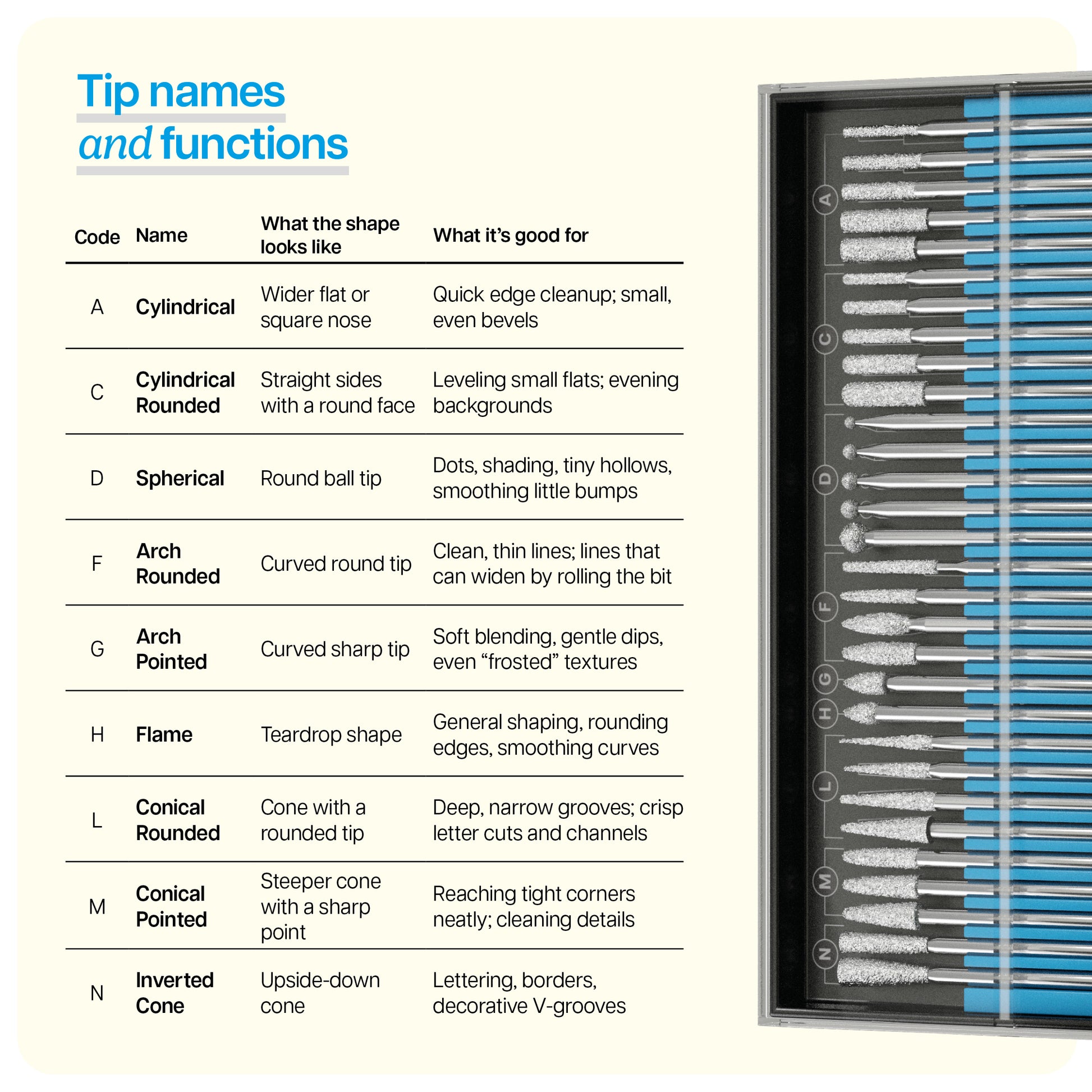 - 30 PROFESSIONAL BITS INCLUDED: From fine detail to bold textures, the set of 30 professional-grade engraving bits (plus carbide burr) covers every style and finish. Each tip is designed for smooth, precise results.