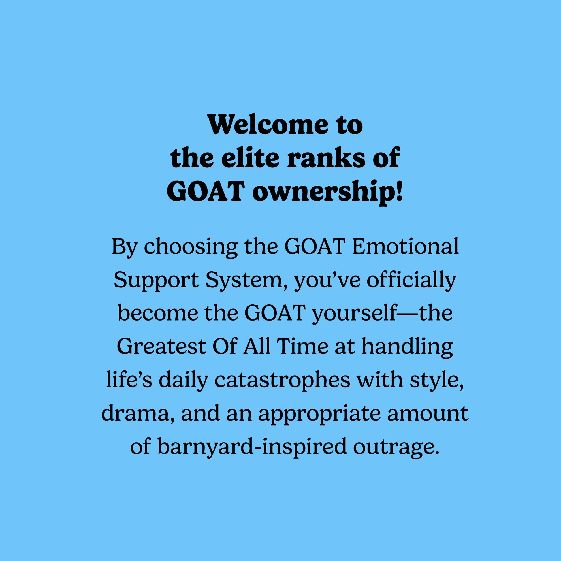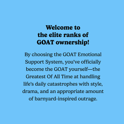 - INCLUDES THE OFFICIAL GOAT OWNER’S MANUAL: You don't just get a goat… You get an entire GOAT lifestyle. The included manual is filled with goat facts, guidance, tips, and goat wisdom to help you master your new barnyard companion.