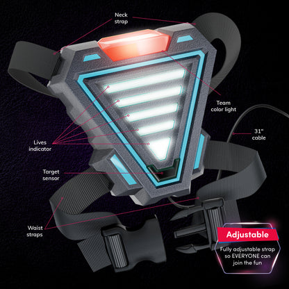 - FULLY SYNCED: The guns and vests are wired together to ensure a seamless experience! Lives and team data are automatically synced.